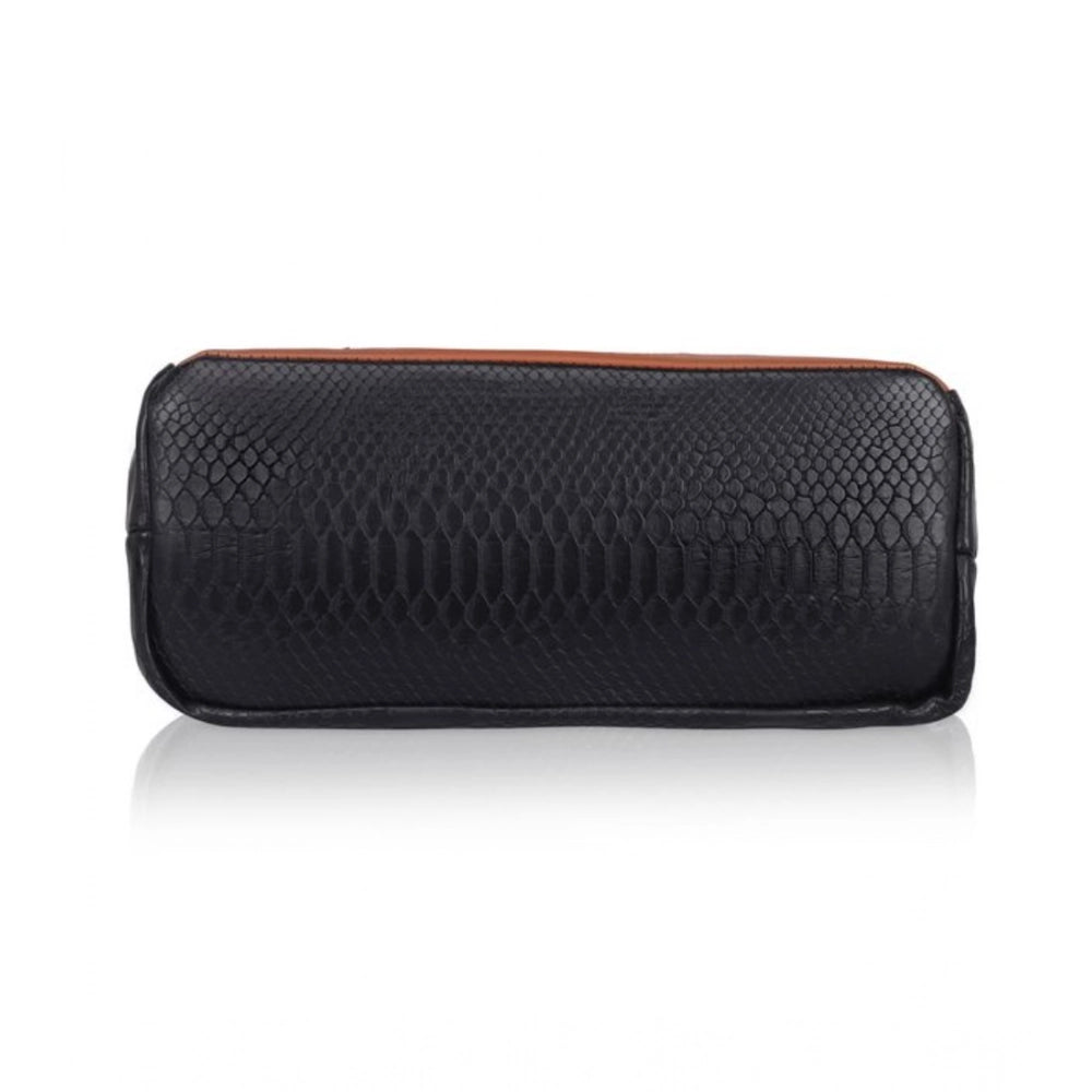 Generic Women's Faux Leather Textured Tote Bag (Black)