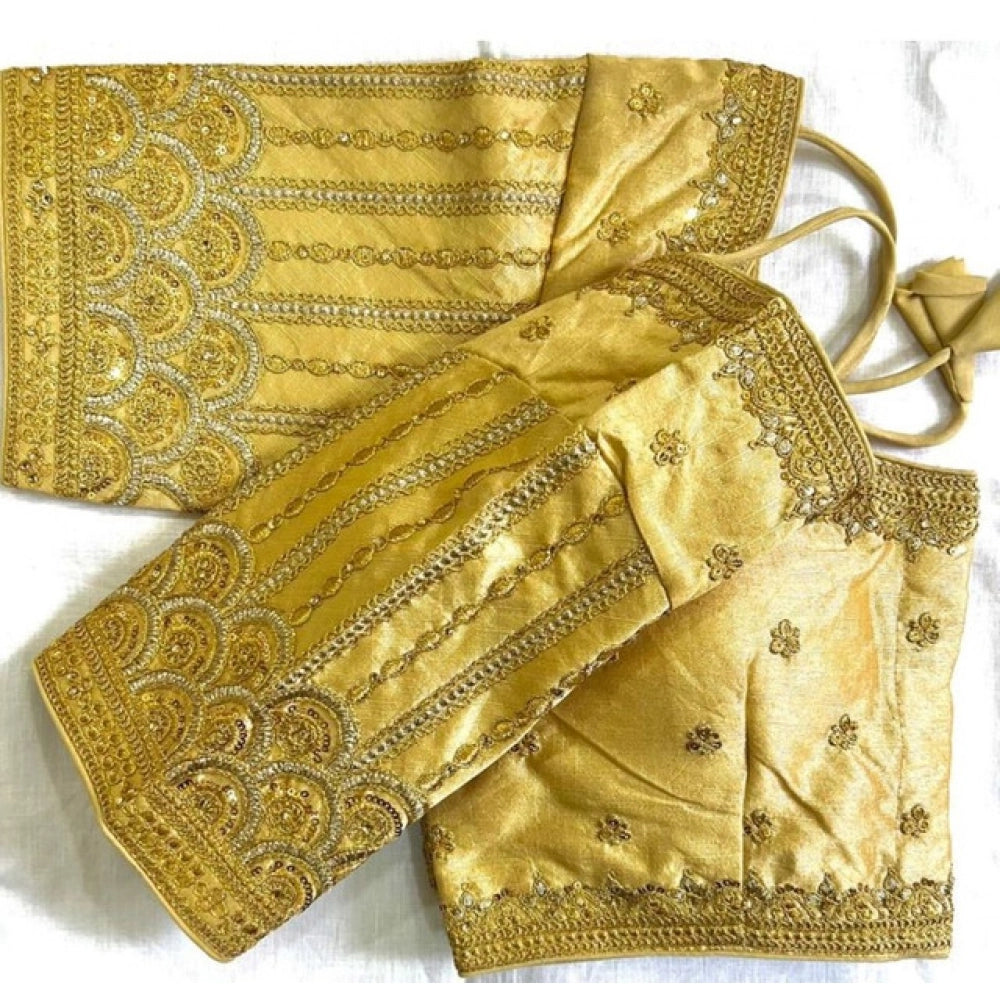 Generic Women's Phantom Silk Embroidered Designer Neck Padded Blouse (Beige 38 Ready (Alterable up to 42)