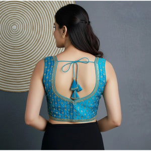 Generic Women's Silk Blend Embroidered V-Neck Non Padded Blouse (Sky 38 Ready (Alterable up to 42)