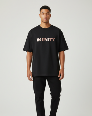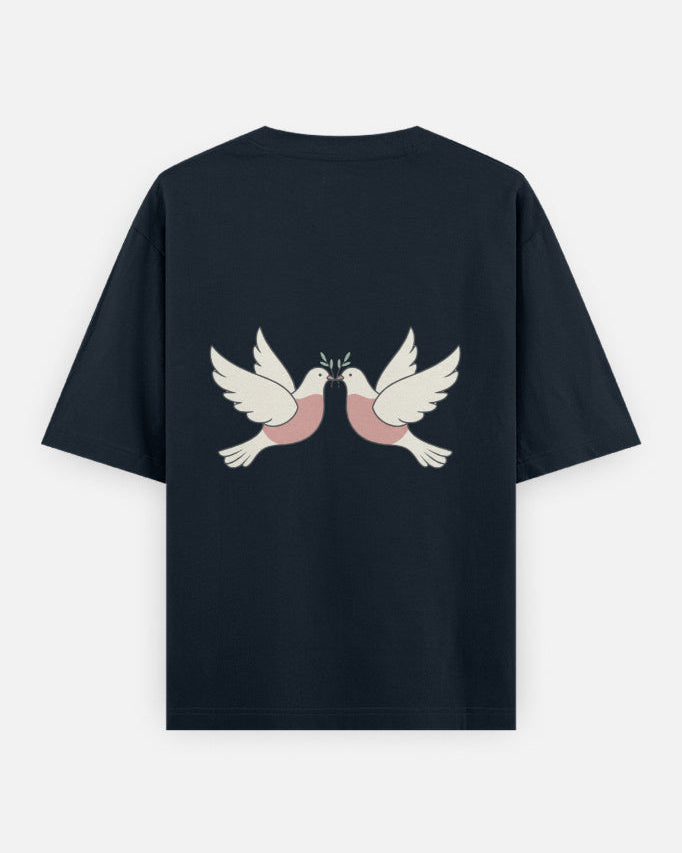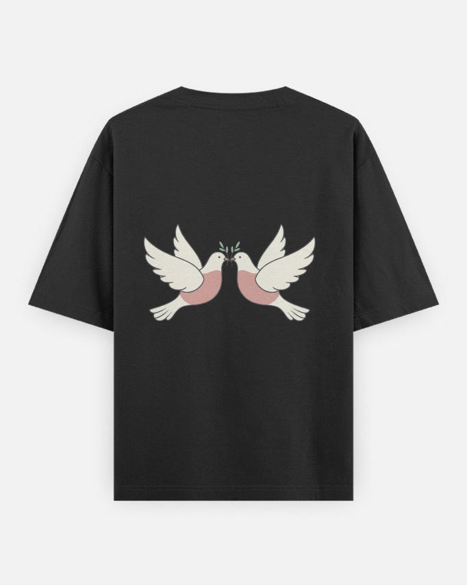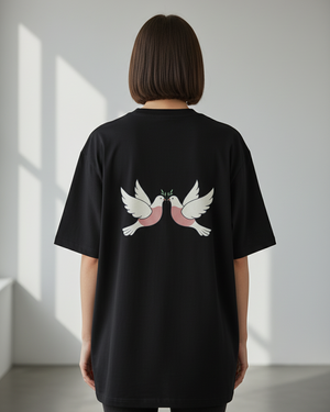 The IN UNITY Oversized T-Shirt features a bold typographic front print paired with an artistic dove illustration on the back—symbolizing harmony and strength in unity. Designed for modern streetwear lovers who value meaning as much as style.