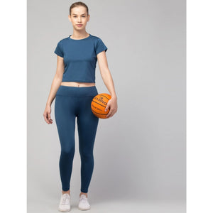 Generic Women's Polyester Solid Ankle Length High-Rise Tights (Teal)
